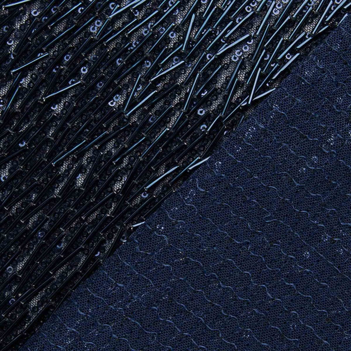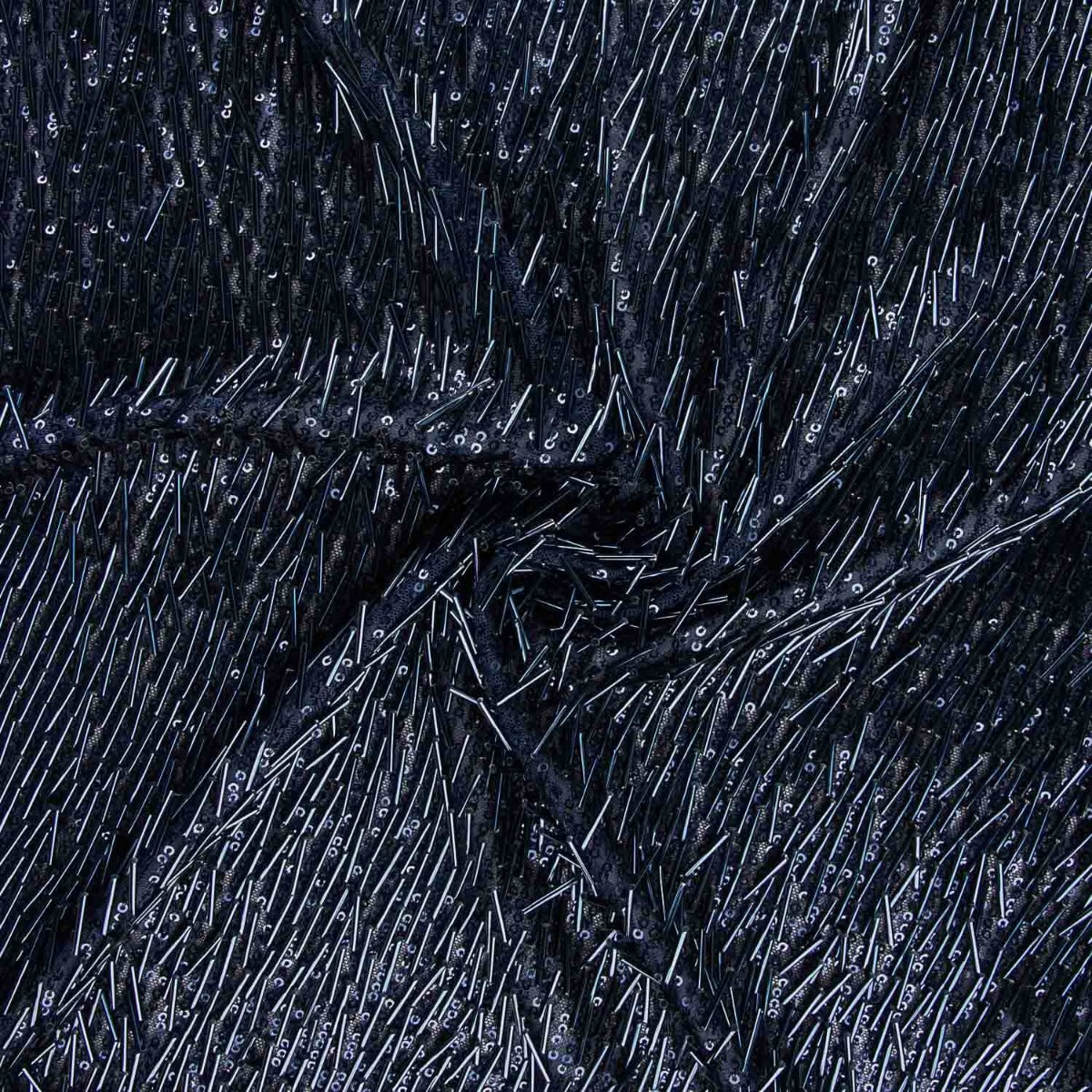 Lentejuelas de canutillo con mucho movimiento de color azul vestidos de fiesta sobre base de poliéster un poco elástica y suave a la piel. Lentejuelas brillantes y muy vistosas, fina, con mucha caída y de alta calidad. La lentejuela es una tela que aporta elegancia a las prendas de ropa confeccionadas. Con esta tela de lentejuelas negra podrás confeccionar tus propias faldas con brillantes, vestidos de fiesta y todo de apliques de moda.