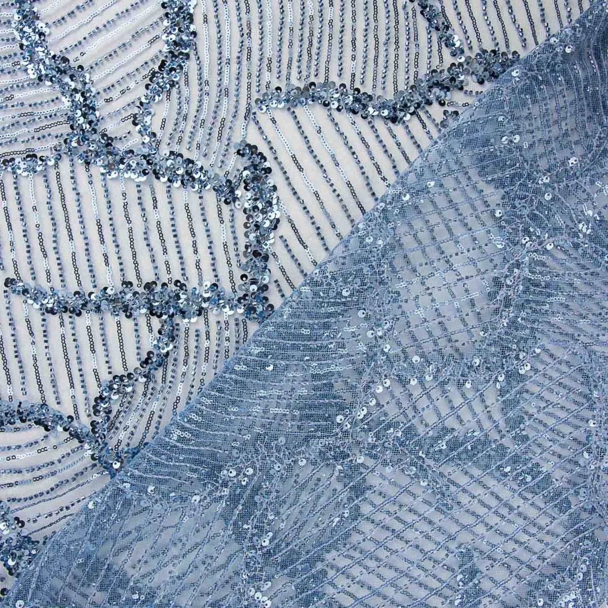 Tela de pedrería con lentejuela modelo bosque con peso. Base de tul transparente de color blanco bordado con cristales y lentejuelas en tonos a juego que aportan destellos y brillos en tus creaciones.