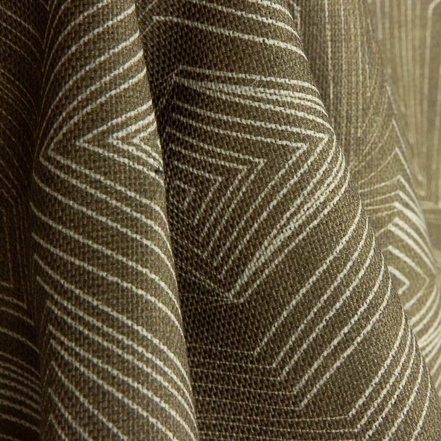 This decorative linen and jute fabric with a geometric pattern in earth tones combines a contemporary design with a warm, natural colour palette, ideal for adding personality and elegance to decoration projects.