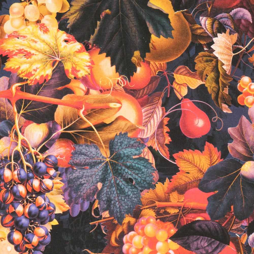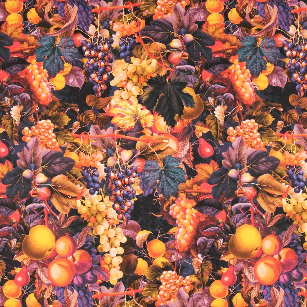 Loneta panamá de algodón con estampado de frutas en tonos morados y lilas. Loneta de gran calidad, opaca y gruesa, tela de gran resistencia, ideal para tapizar. Loneta de algodón para decoración del hogar, tapizar sofás y sillas. También puedes confeccionar cortinas, colchas de cama y todo tipo de accesorios, bolos y bolsas. Al ser una loneta de algodón 100% es aconsejable mojar o lavar antes de utilizar.