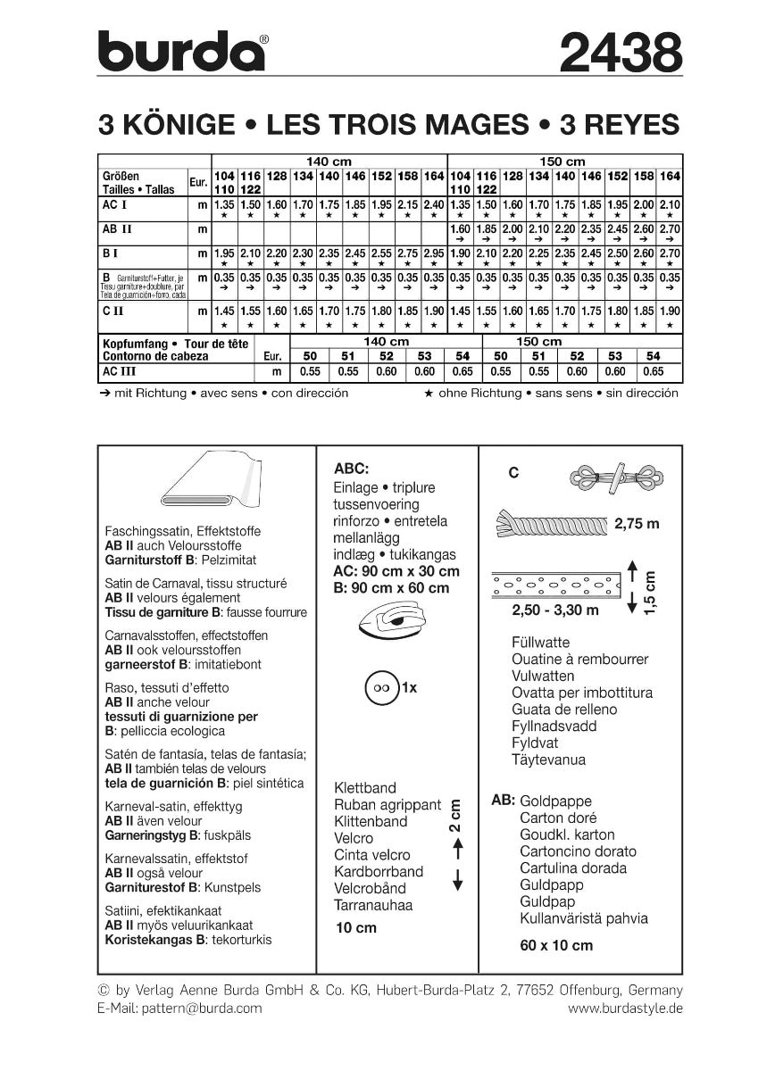 Patrones Burda para crear disfraces infantiles de los tres reyes magos.