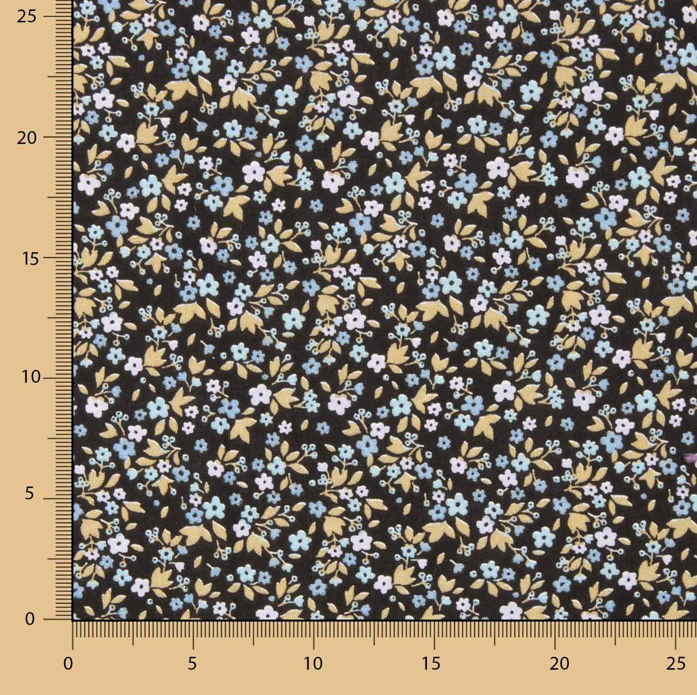 This 100% cotton calico fabric with a floral print on a black background is an ideal choice for clothing and decoration projects that require a fresh, natural and charming finish. This 140 cm wide fabric stands out for its softness, breathability and pleasant feel, making it an excellent choice for bedding, blouses, light dresses and crafts.