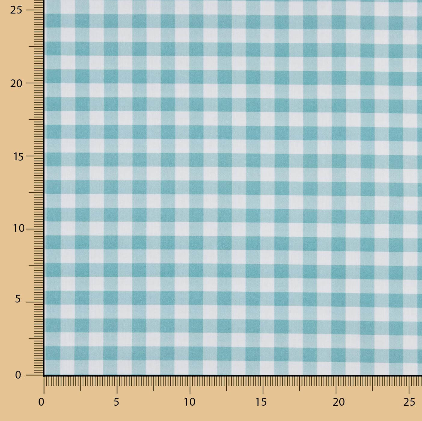 Percale printed with medium turquoise squares made from 100% cotton and woven in 200 thread count percale, which guarantees softness, freshness and excellent resistance. It features a digital check print in shades of turquoise and white, with an approximate size of 1 cm per side, ideal for clothing and textile decoration. Its medium-sized gingham design gives it a fresh and bright style, perfect for both clothing and home textiles. The percale fabric offers a smooth finish, soft touch and high breathability, providing comfort and durability.
