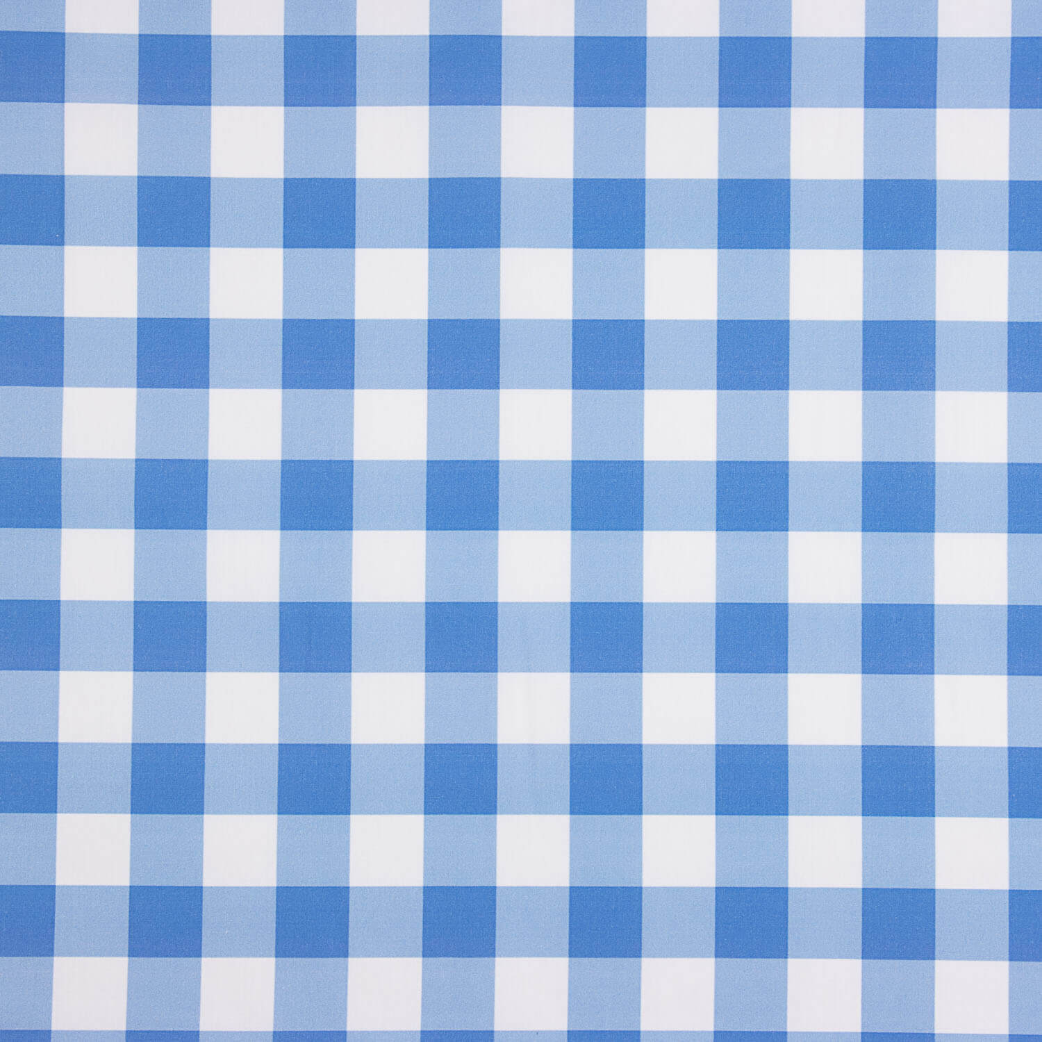 Blue Check Print Percale made from 100% cotton and woven in 200 thread count percale, guaranteeing softness, freshness and excellent resistance. It features a classic digital print of blue and white checks, approximately 4 cm per side, ideal for clothing and textile decoration. Its gingham design provides a timeless and versatile style, perfect for both clothing and home textiles. The percale fabric offers a smooth finish, soft feel and high breathability, providing comfort and durability.