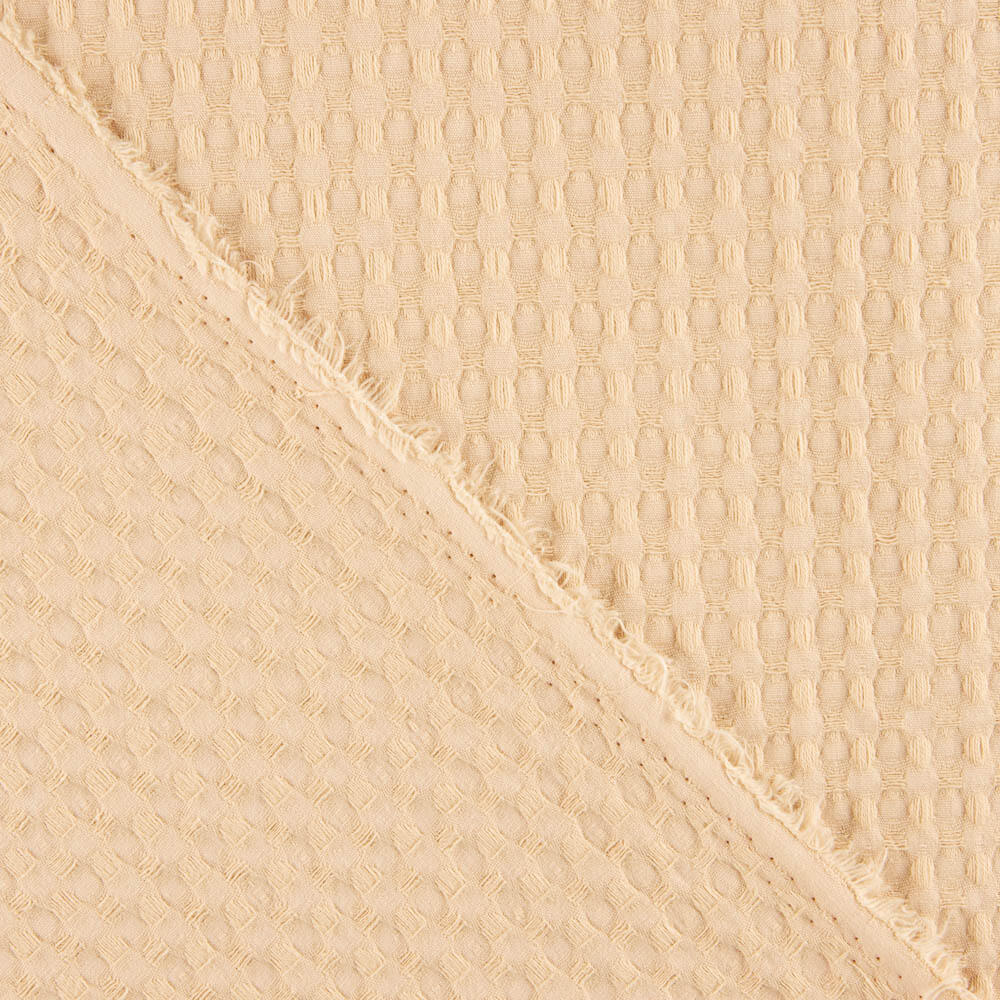 Waflle piqué fabric with the big check for nude pink towels. Fabric also known as piqué towel, because of the squares in relief that make up the fabric. It has the perfect body and weight for summer bedspreads, baby blankets and baby accessories. Perfect for sewing bathrobes. Very sweet fabric due to its cotton composition, it can be used as a pram bag and summer quilt.