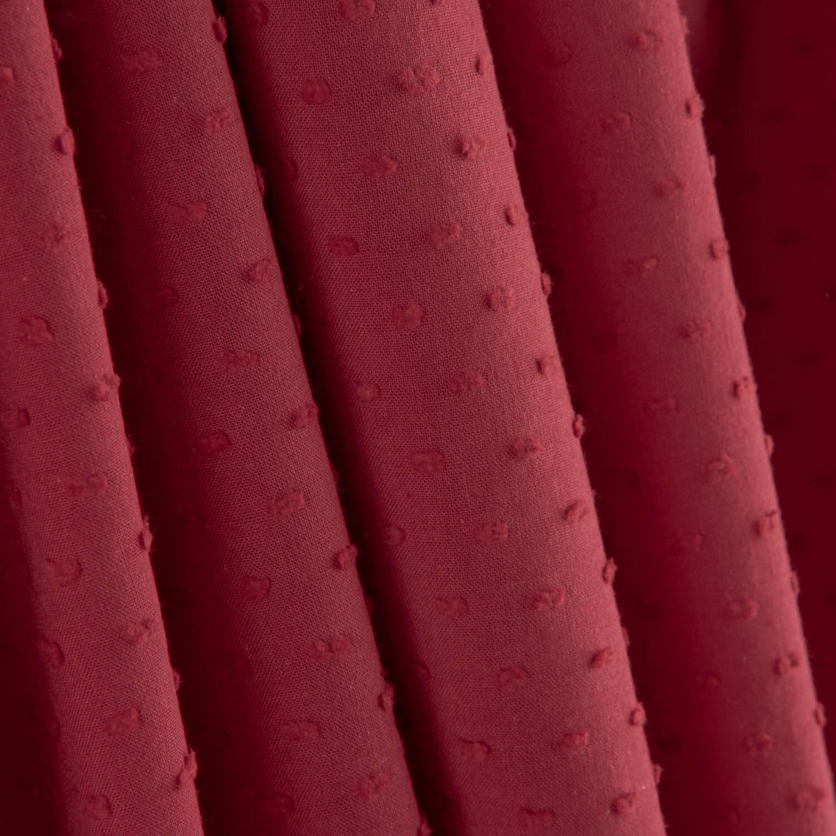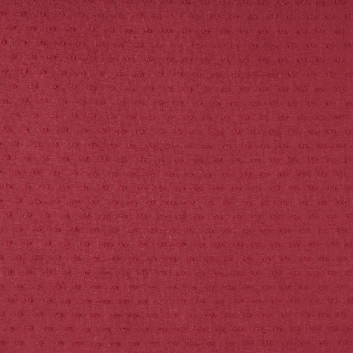 Our Swiss Dot Cotton Batiste in 100% cotton in Red is a lightweight, fresh fabric with character, perfect for elegant garments full of personality. It features small embroidered dots (plumeti) spaced 1.3 cm apart, in the same intense red tone, creating a subtle yet striking effect. With a weight of 107 g/m², it offers a light drape and a soft feel on the skin, ideal for blouses, dresses, skirts, children’s fashion, layettes, baby garments, occasion wear and light decoration. For sewing, we recommend using fine needles (60/8 – 70/10) and delicate finishes such as French seams or narrow overlocking. It can be paired with lightweight linings such as plain batiste or cotton voile to add opacity without losing freshness. Its red tone adds intensity and sophistication, perfect for summer garments, children’s fashion and decorations with a vibrant style.
