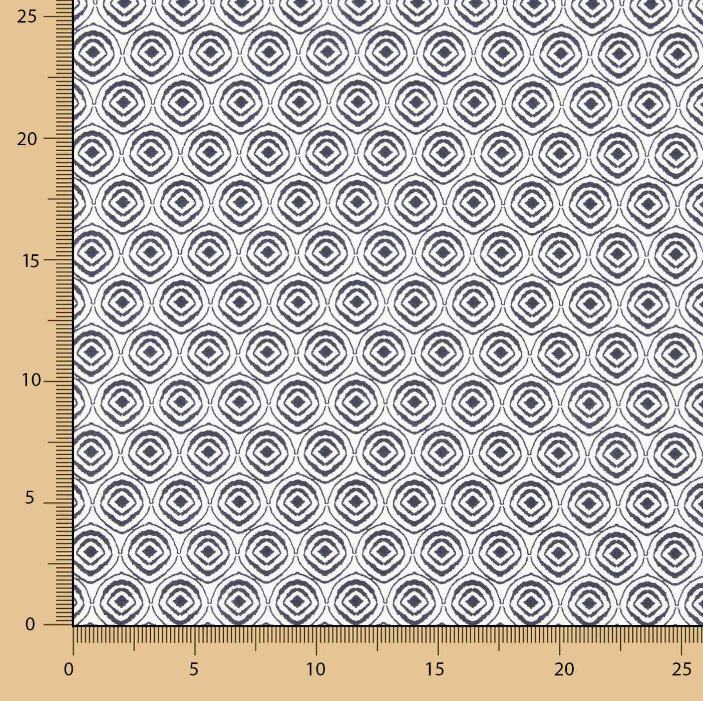 Discover the 100% cotton poplin with "Jaipur Geo Marino" print, a repetitive geometric design in navy tones on a light background that provides a modern, elegant and versatile style. Its graphic-inspired pattern combines perfectly with contemporary garments and current sewing projects.