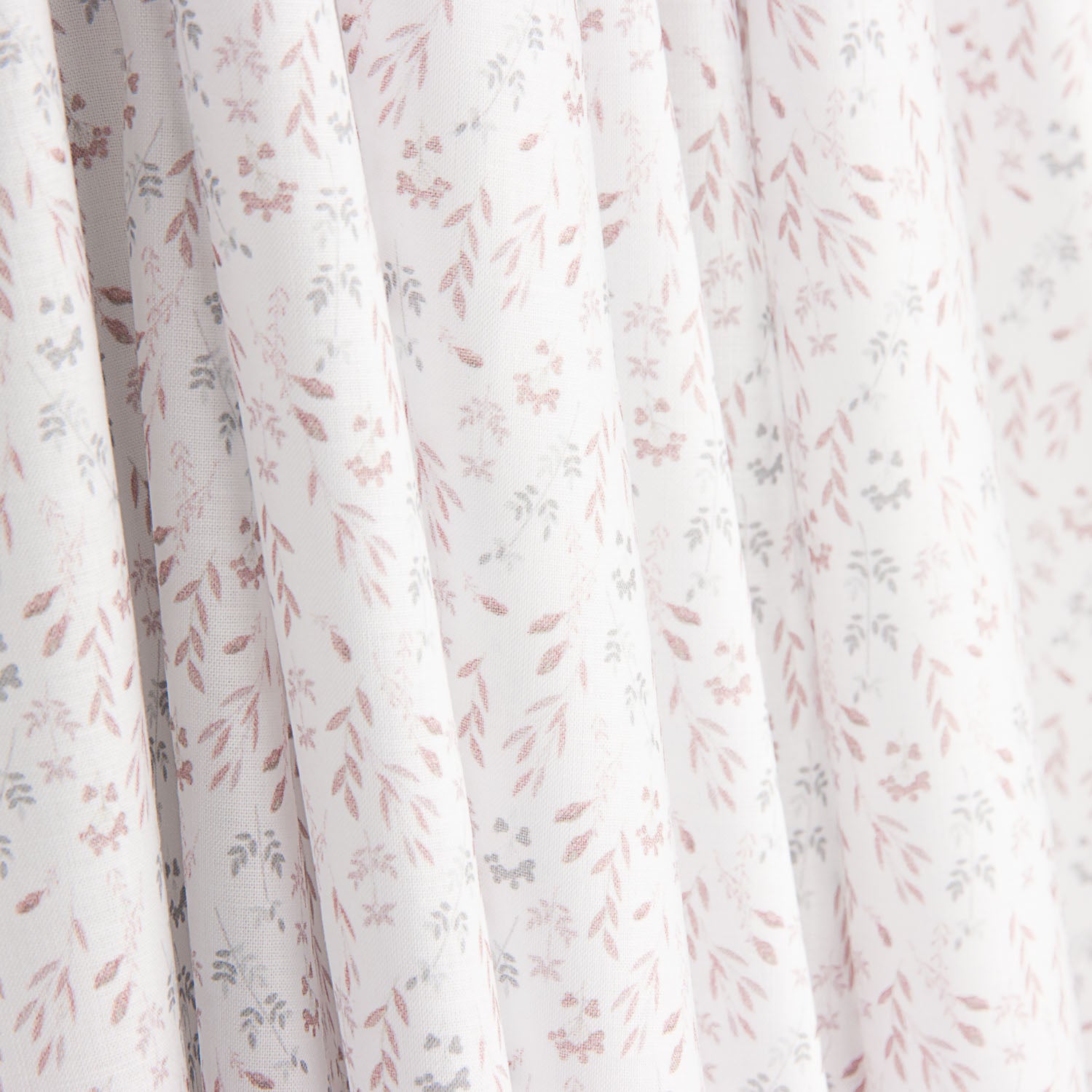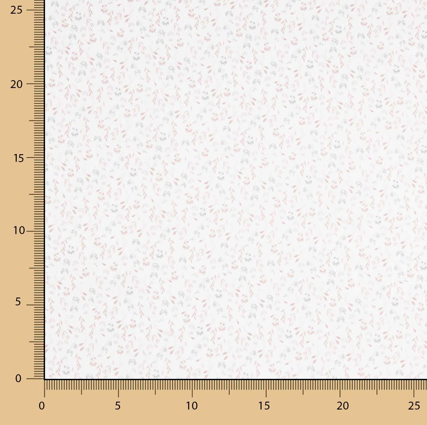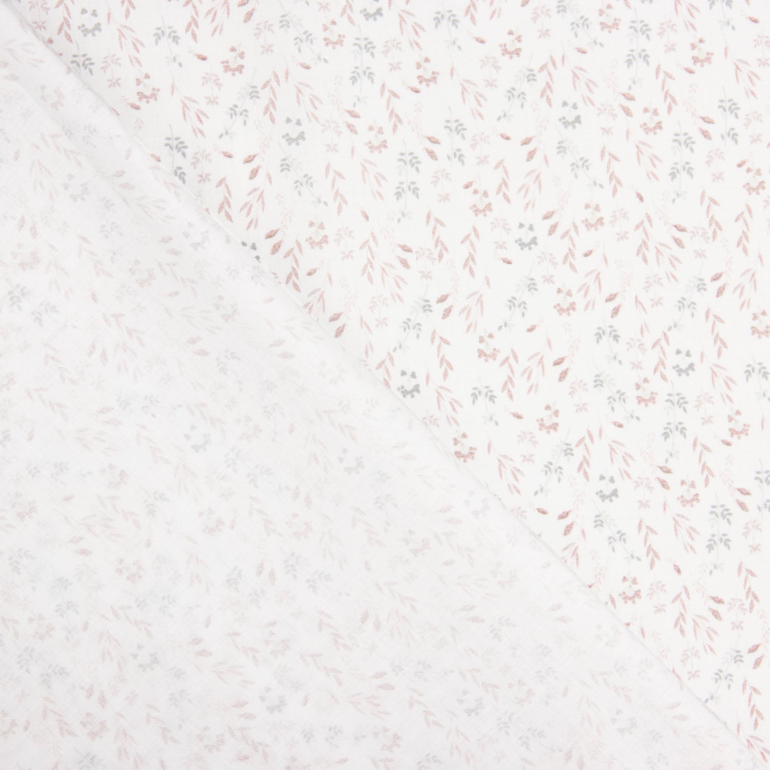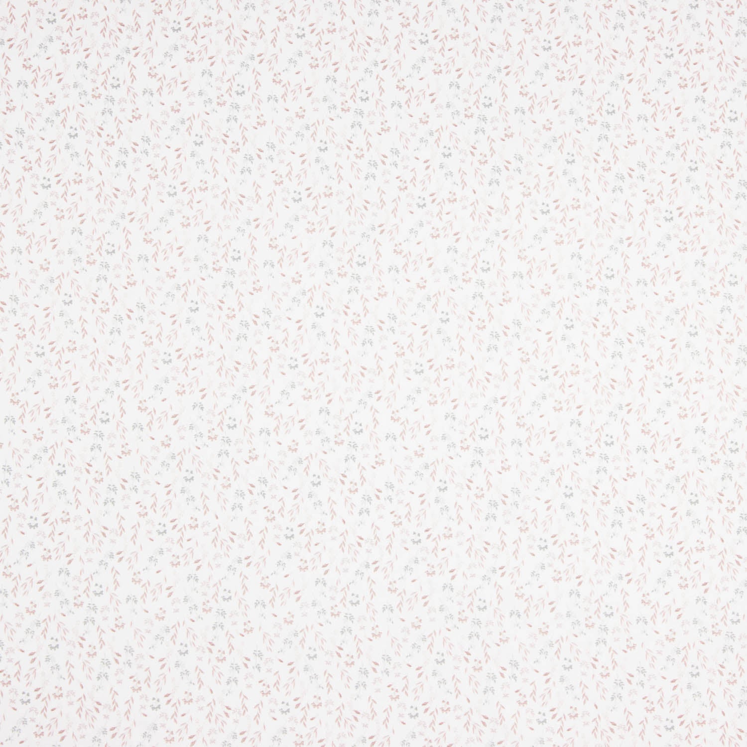 100% Cotton Poplin with Nude Twigs Print with a width of 150 cm. Natural cotton fabric with a delicate print of small flowers and twigs in nude and soft grey tones on a light background, ideal for women's and children's clothing.