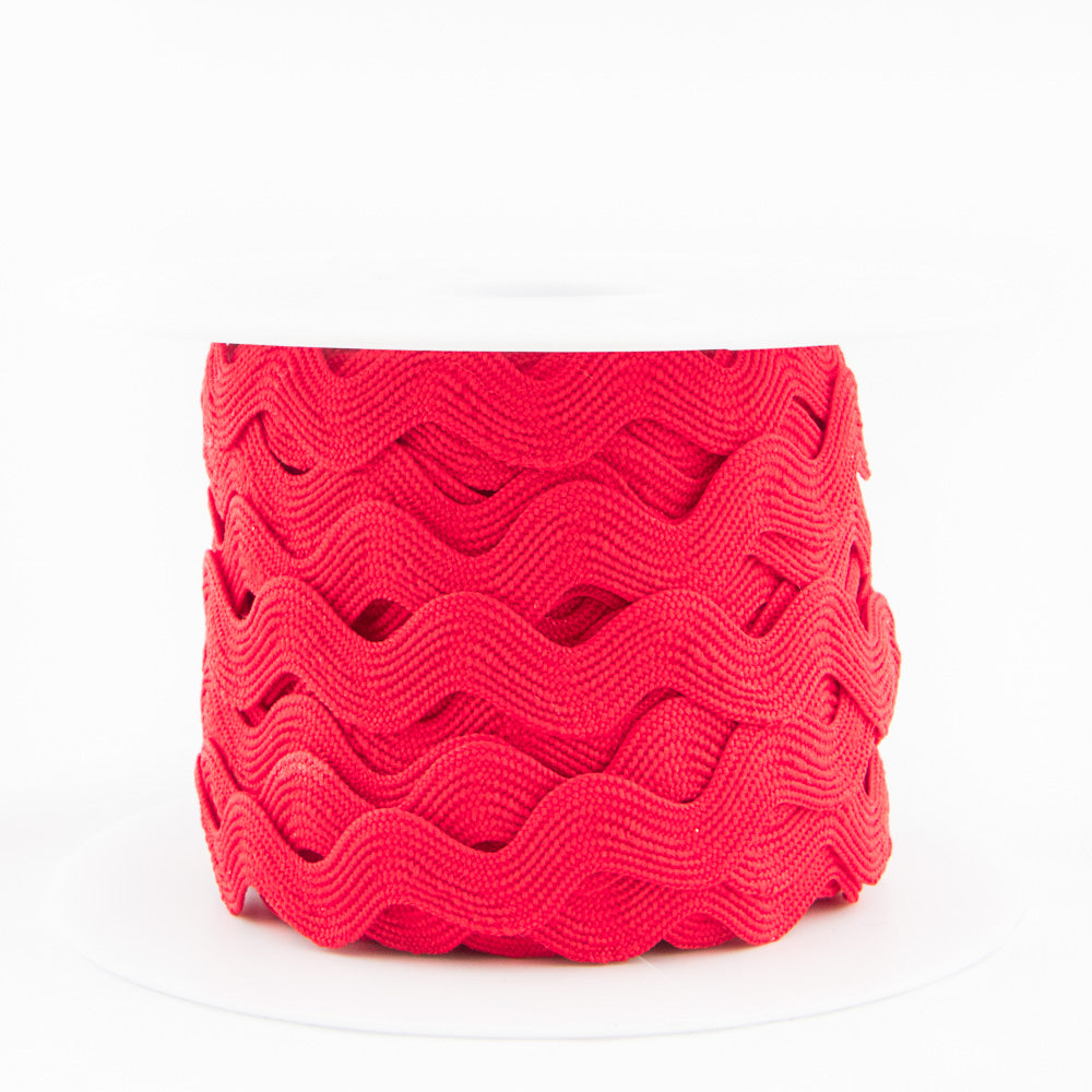 Wave ribbon in red. Zigzag ribbon trimmings to complement your creations. Available in three sizes of ribbon width (price changes per size), 9 mm, 14 mm and 20 mm. Buy the meters of wave you need from one meter.