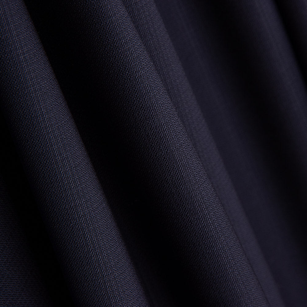 Tela de lana fría con efecto cuadrillé en color azul marino.La tela de lana fría es un tejido ligero y transpirable hecho de fibras de lana de alta calidad.