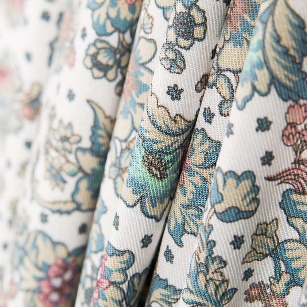 Tela de flores cretonero en verdes. La viyela es una tela clásica que no pude faltar en la colección de todo profesional o aficionado a la costura. Tela principalmente de algodón o lana, convirtiéndola en un tejido muy suave, sostenido y ligero, con una trama que recuerda en aspecto a la sarga. Tela estampada ideal para confección de vestidos, faldas y camisas.