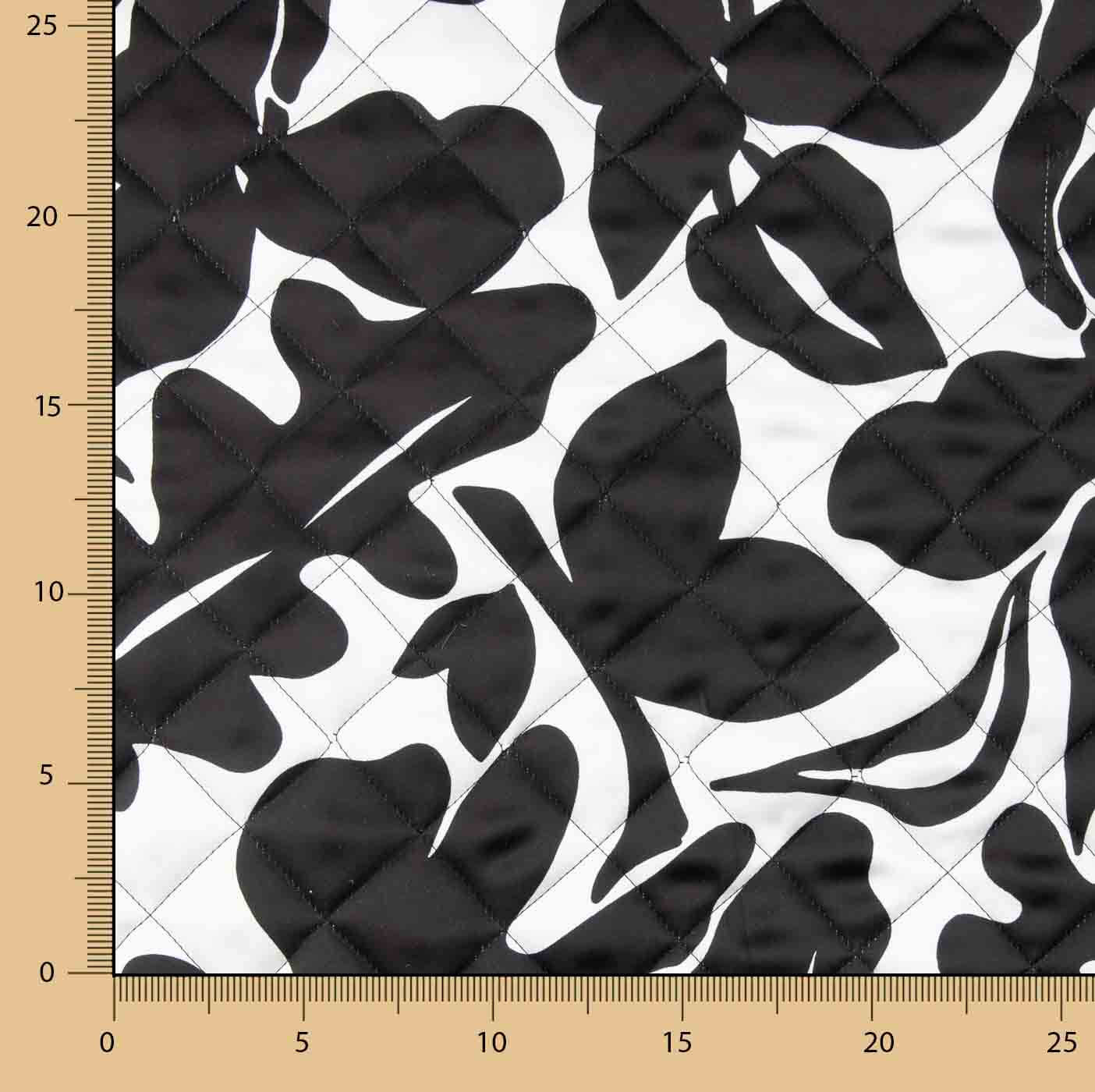 Reversible quilted fabric, 100% polyester, width 150 cm. One side has a plain black waterproof lining and the other has a black and white printed lining, offering versatility and design in a single piece. Its quilted structure provides warmth without adding excessive volume, combining lightness, strength and ease of manufacture. It is a practical and elegant option for making jackets, coats, waistcoats, capes, bags, backpacks or as a reinforcement fabric in light upholstery projects. A durable, functional fabric that is perfect for both professional use and creative sewing.