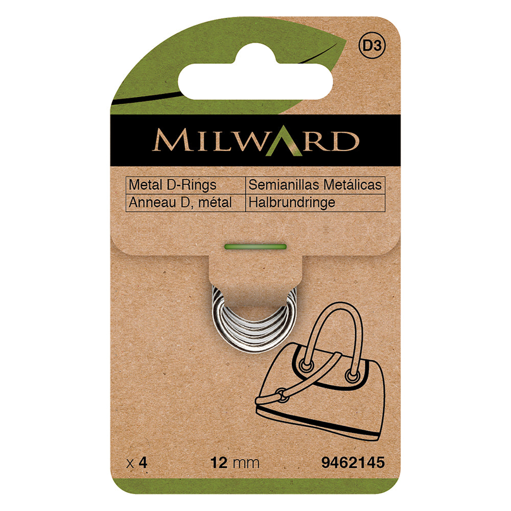 Pack de 4 anillas en D de metal en color plata de 12 mm diámetro.