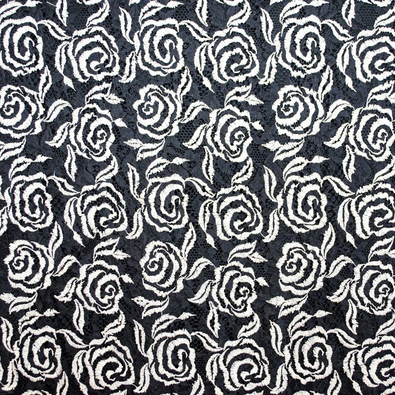 Tela de blonda con dibujo floral de color baiege claro. Blonda de color negra translúcida y con cierta caída, ideal para la confección de vestidos y aplicaciones.