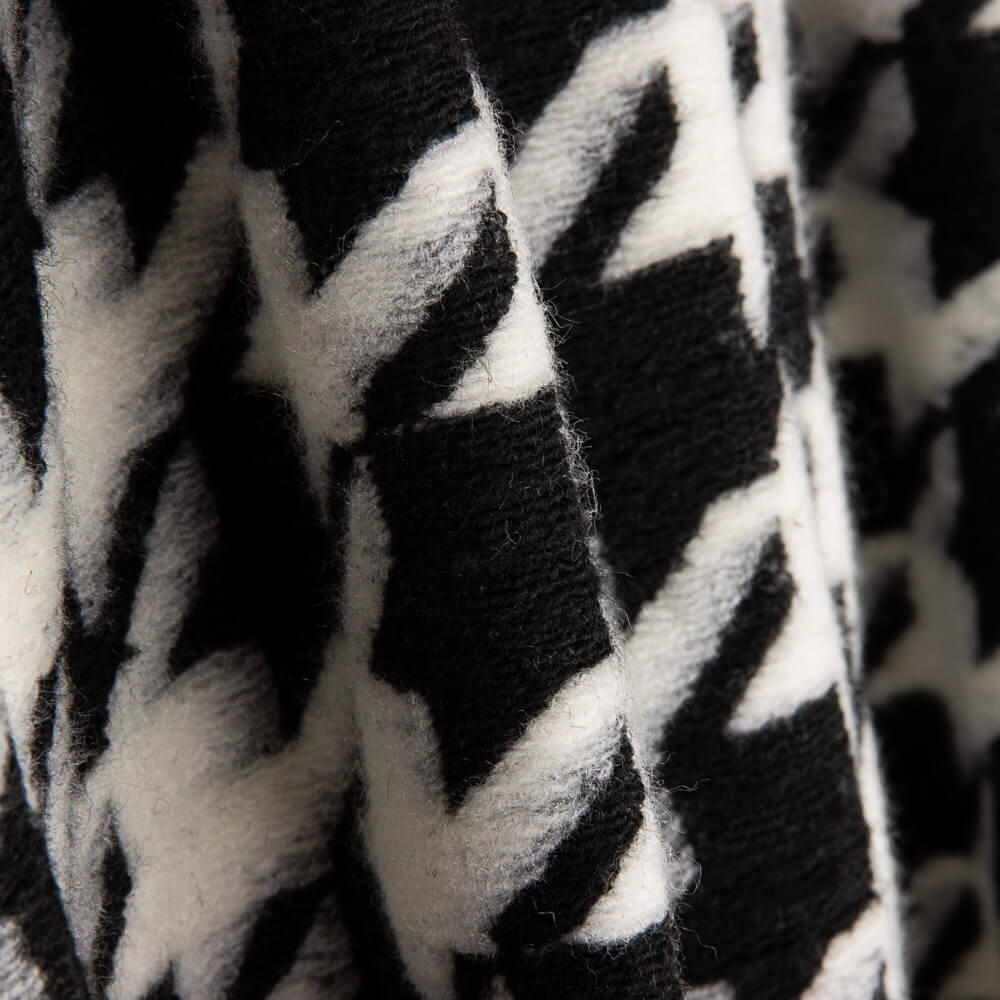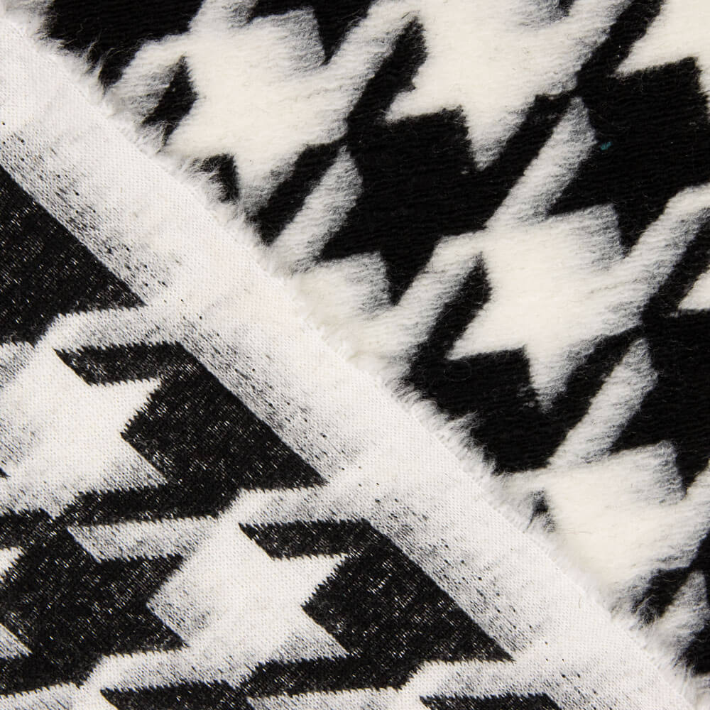 Tela de punto acrílico grueso con estampado de pata de gallo. Tela de tacto lanoso, gruesa y con cuerpo para prendas exteriores de invierno o ponchos...